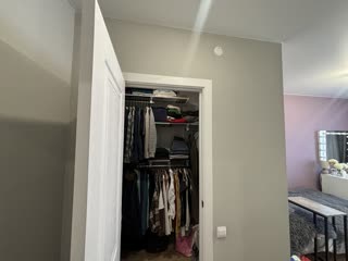 Отдельная гардеробная — освобождает жилые комнаты от шкафов, это редкое и удобное решение.