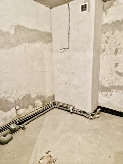 Предчистовая отделка: стяжка пола, оштукатуренные стены, разведенные коммуникации.